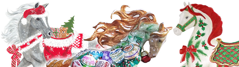 This design was inspired by my love of vintage colors, the glow of the Christmases I remember as a child, and the ornaments that were on our family tree that were passed down from generations. The sparkle and glow on those vintage ornaments always seem to make Christmas more special. The other side of the pony, with the horseshoe and the holly, candy cane, and ribbon, just round out the softness with a slight Victorian feel that brings the Pony more into the Christmas spirit.