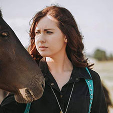 When she was just a teen, this artist was gifted a mustang mare, descended from horses brought to the Americas by the Spanish conquistadors, that had been trained to barrel race. It was a dappled gray with a black mane and legs, caught as a wild filly in Mexico, and it had only one speed. Fast was all she knew. And she would burn that clover pattern at a blazing pace.